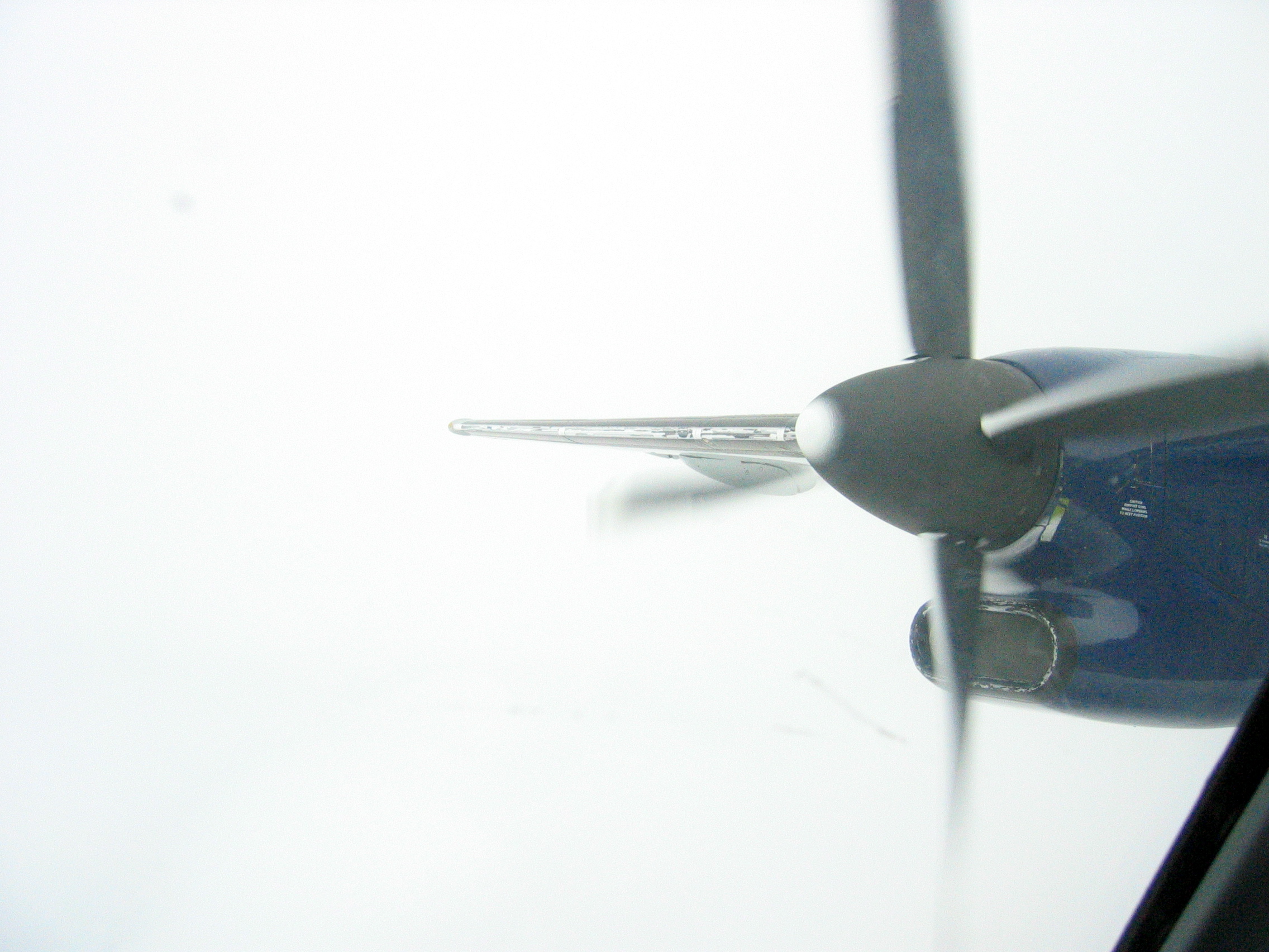 There's a bit of rime ice on the leading edge of the wing that the boots don't do a great job taking care of. This isn't a big deal. If more serious ice accumulations occur, the boots do a better job. You can also see the ice forming on the leading edge of the prop blades and the tip of the spinner.