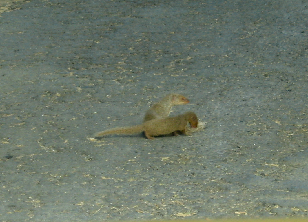 We stopped to watch three mongooses licking at some roadkill in the middle of the road. They were very cute.